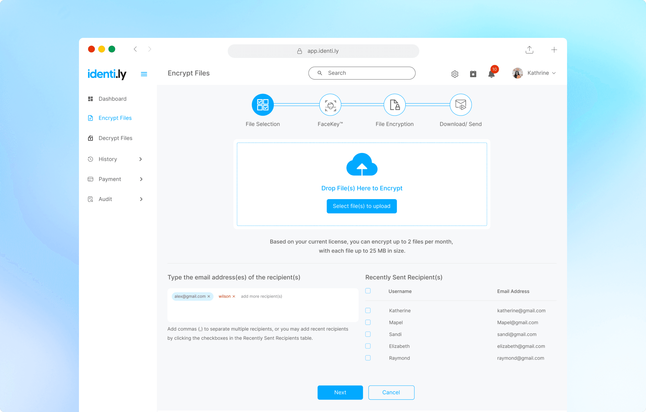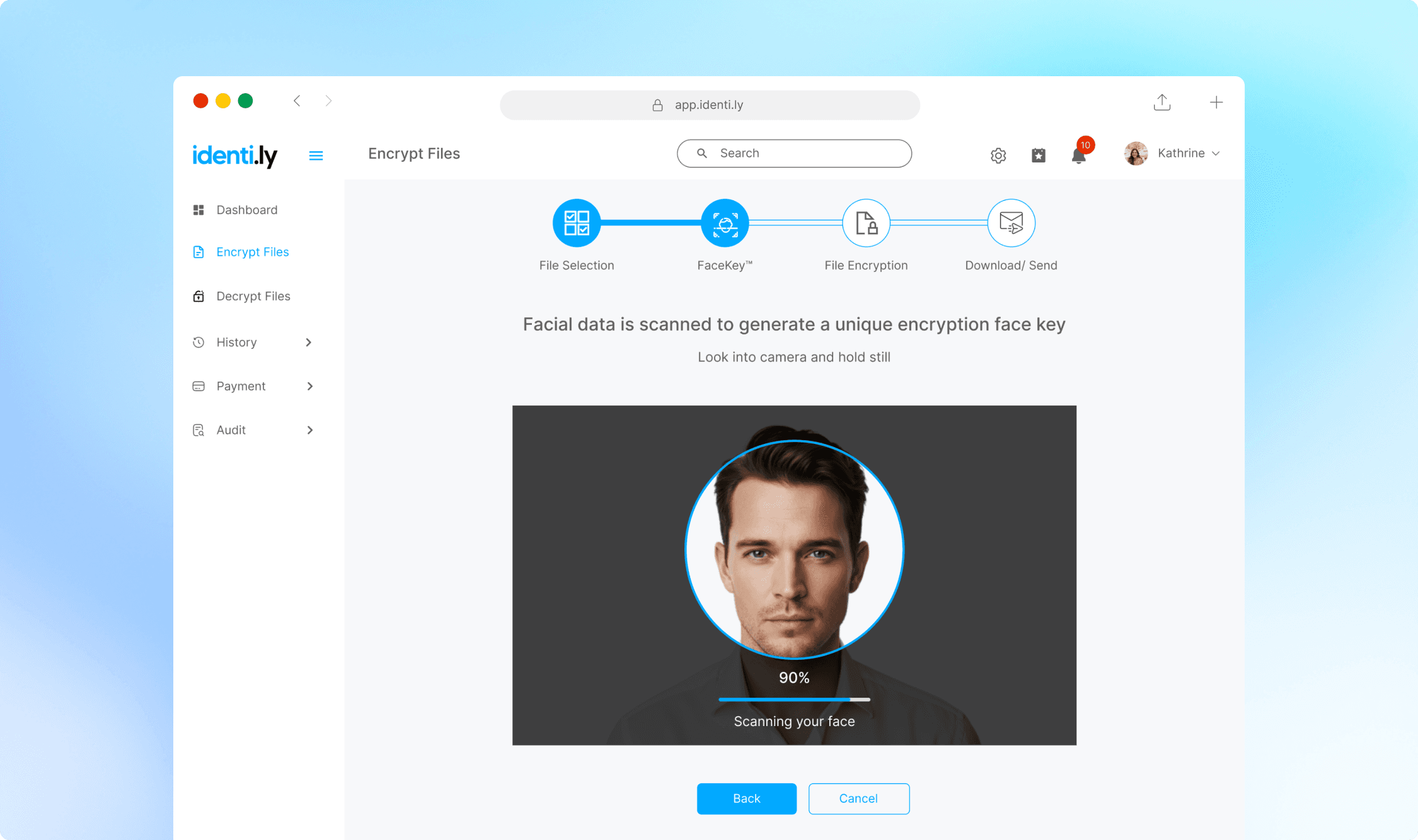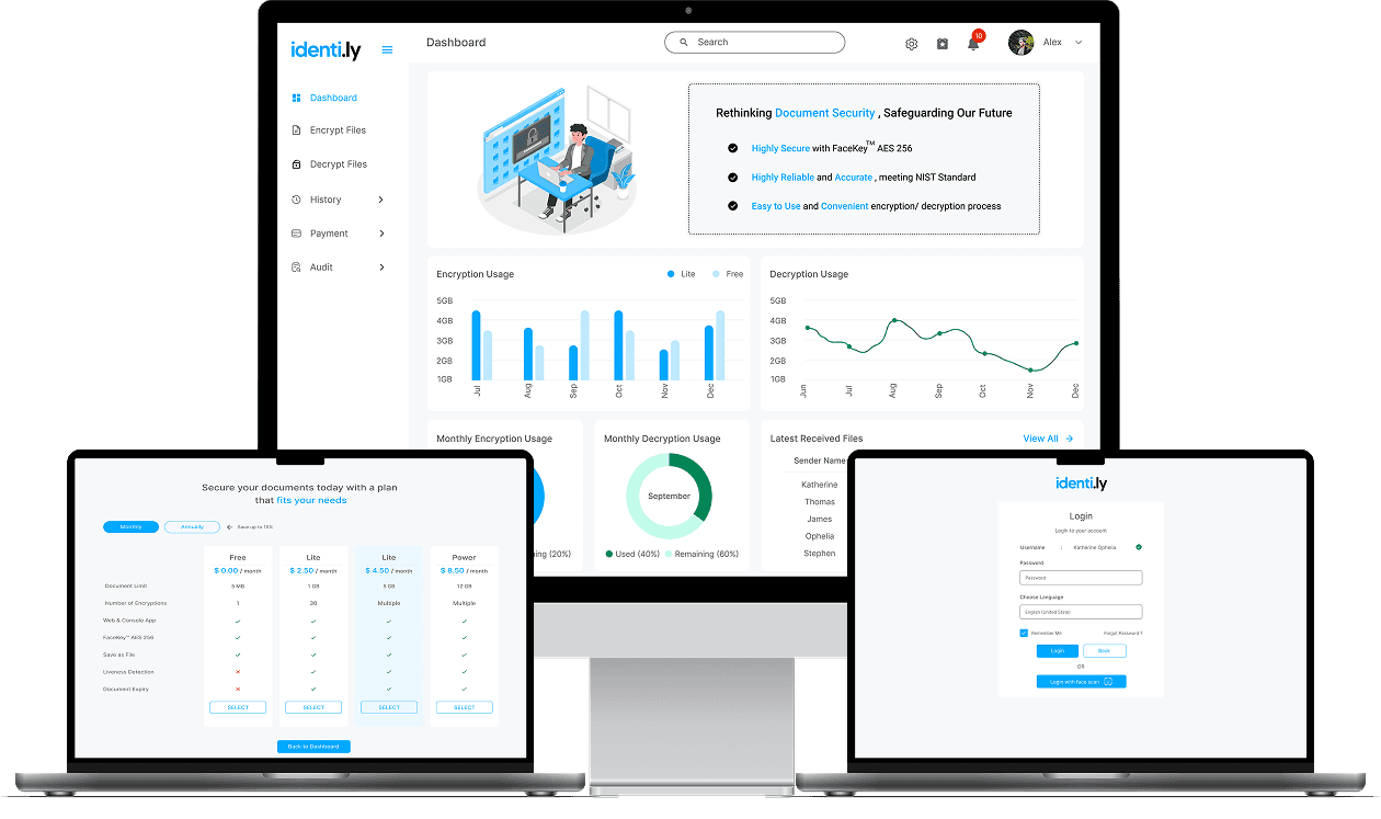 Identily is a web-based encryption and decryption application designed for secure file sharing. It uses biometric face verification and email-based identity confirmation to ensure end-to-end security.